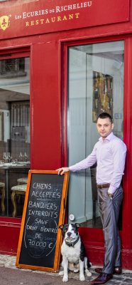restaurant interdit aux banquiers« Autorisé aux chiens. Interdit aux banquiers sous réserve d’un droit d’entrée de 70 000 euros ». Alexandre Callet, le jeune propriétaire des Écuries de Richelieu, restaurant gastronomique répertorié au Guide Michelin situé à Rueil-Malmaison dans les Hauts-de-Seine, savoure sa provocation.