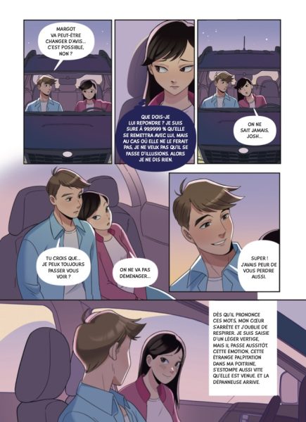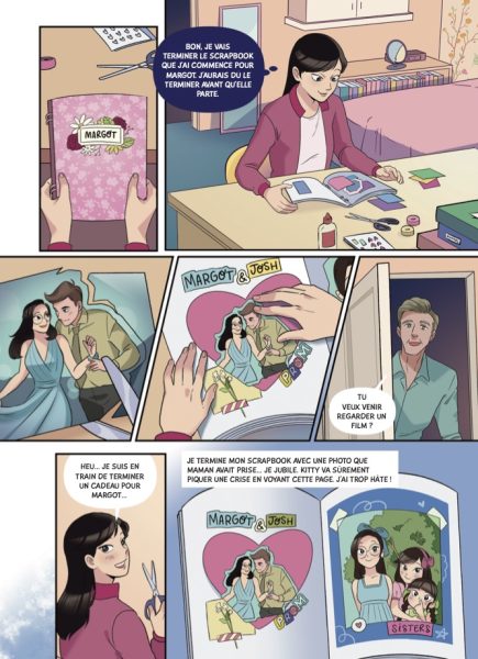 Sa mère décédée. Sa vie avec son père et ses deux sœurs. Mais aussi, avec son voisin le plus proche, petit ami de Margot, son aînée, qui fait comme parti de la famille. C’est le gentil et assez beau Josh. Pour qui elle craquait, il fut un temps. Mais, bon, cette «pseudo-histoire d’amour » est imaginaire, et surtout révolue depuis qu’il s’est mis en couple avec Margot.