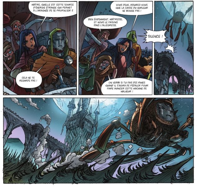 Tandis qu’il ronfle impunément, Esperanza, qui s’était affalée sur son épaule, se réveille en sursaut, à cause d’une odeur pas très catholique !!! Elle soupçonne Basile de ne pas s’être lavé les dents, alors que celui-ci prétexte des remontées maritimes qu’ils survolent !!!! Pendant ce temps, Flamel réfléchit à leur position actuelle. Comme Fibus, enfin, qui réfléchit aussi, mais pas du tout par rapport à leur situation. D’autres questions, comme la durabilité du vieux Flamel, le tourmente !!!!