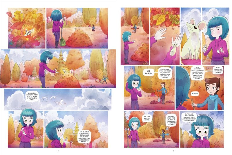 C’est l’automne, le moment de nettoyer le jardin de toutes ses feuilles formant un tapis orangé. Papa et Alia s’affairent à balayer de petits tas dans chaque recoin ! Mais, Alia est surprise par Meruem, la petite créature lui ouvrant le passage vers le monde magique. Ce qui lui rappelle sa dernière aventure avec cette sorcière dans le manoir. Comment grand-père a -t-il pu disparaître en laissant ses formules ?? Il lui faut trouver des réponses dans l’autre monde.