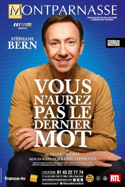 Vous n’aurez pas le dernier – Seul-en-scène avec Stéphane Bern. Habitué des escapades dans les coulisses de l’histoire, Stéphane Bern, narrateur de génie, nous emmène à la découverte des dernières phrases d’hommes illustres, prononcées avant qu’ils ne ferment les yeux et ne nous fassent cadeau, une dernière fois, d’un bon mot d’esprit. Une soirée au ton badin où narration, poésie et passion, se mêlent à un tantinet de taquinerie.