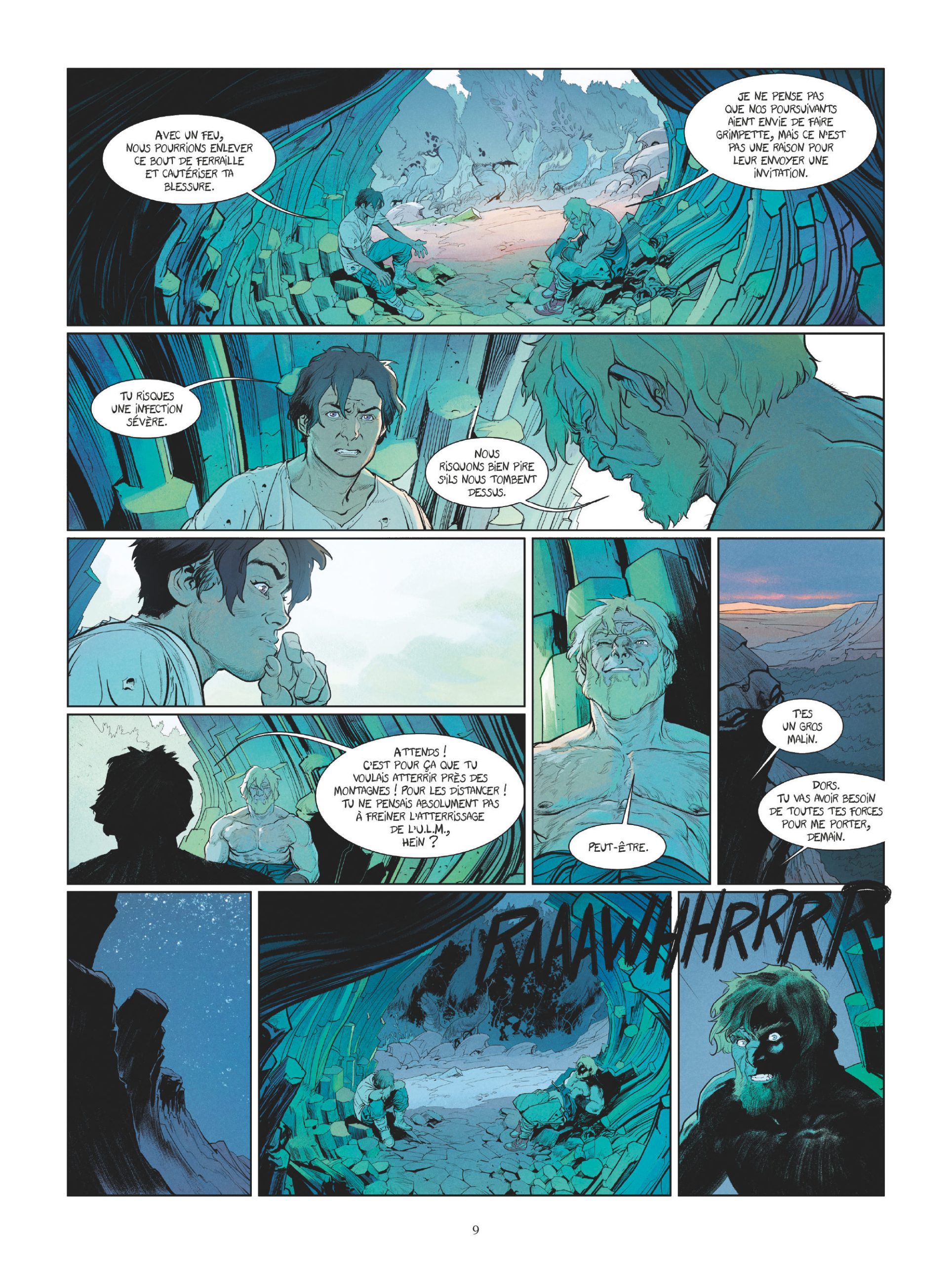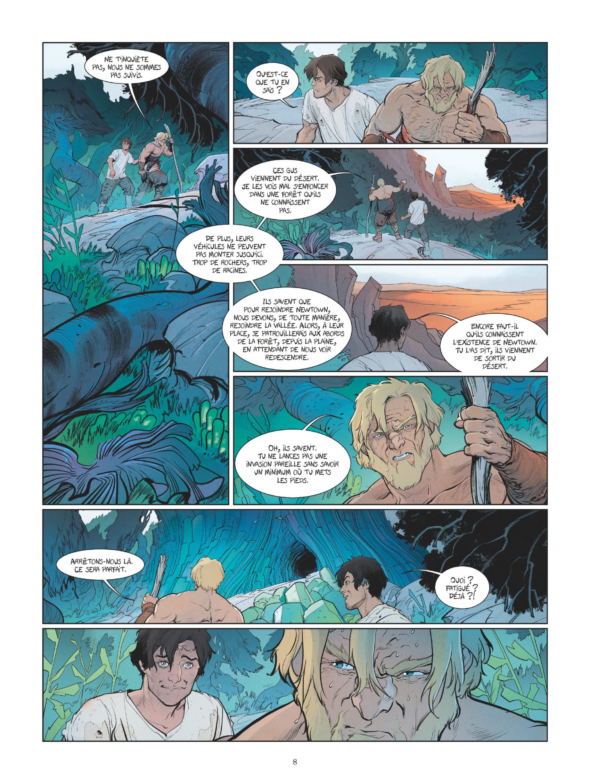 Une foule d’informations qui entraîne le lecteur toujours plus dans l’expectative. Rendant ce flot scénaristique encore plus passionnant, avec des illustrations fortes et maîtrisées de Ronan Toulhoat, Brice Cossu, accompagnés de la colorisation marquante de Yohan Guillo. Le « grand format » Glénat rend grâce à tout ce spectacle et à cette ambiance digne d’un Mad Max et tout aussi culte ! Les paysages alternent entre désert aride sous soleil de plomb et forêt touffue aux dangers gigantesques !