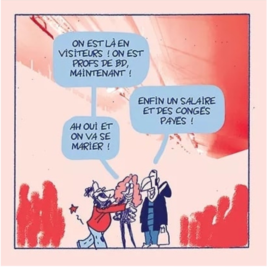 Tout la fait sourire : le ciel bleu, la ville du 9eme art, l’excitation de voir les expositions et découvrir les éditeurs pour présenter son « book ». Jusqu’à ce qu’elle commence le « périple » !!! Déjà dans le hall de la gare, elle se frotte aux contrôleurs « vigipirate ». Ensuite au silence des personnes à qui elle demande son chemin, mais qui sont déjà très occupées par l’arrivée des « VIP » sûrement plus importants qu’elle !