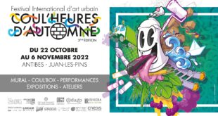 Initié par l’association Label Note, structure porteuse du Centre d’Art Urbain et Musical La sChOOL et du Festival Nuits Carrées d’Antibes, le Festival International d’art urbain Coul’Heures d’Automne se poursuit jusqu’au 6 novembre à Antibes Juan-les-Pins ! Un événement unique sur la Côte d’Azur Cet événement unique sur le territoire …