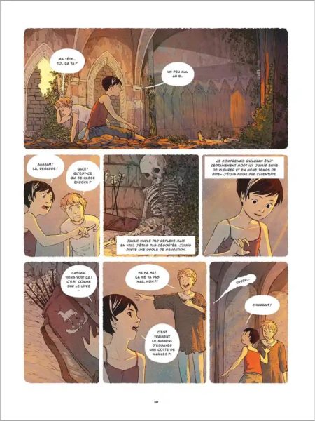 Inauguration de ce premier tome des Chevaliers de l’Étrange, s’ouvrant sur la présentation de cette famille touchée par un passé révolu !. On plonge en plein mystère générationnel, pendant qu’Anaïs Halard déroule un scénario réaliste et touchant. La relation grand-mère/ petite-fille prépondérante dans les premières pages de lecture est adorable. On découvre cette famille monoparentale confrontée à des problèmes actuels. Puis, ce futur trio d’enquêteurs « multisocial » issus de milieux complètement différents.