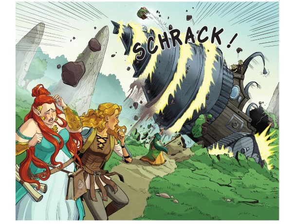 Mais, soudain, avant d’arriver au village des Druides, voilà qu’elles subissent une attaque de gobelins !! Tandis que chacune pense venir à bout de ces imposteurs détruisant la forêt, elles sont surprises par une créature mi humaine-mi-végétale, qui vient leur prêter main forte. Enfin, qui les sauve surtout de cette mauvaise situation, en envoyant valdinguer la machine infernale des gobelins !!
