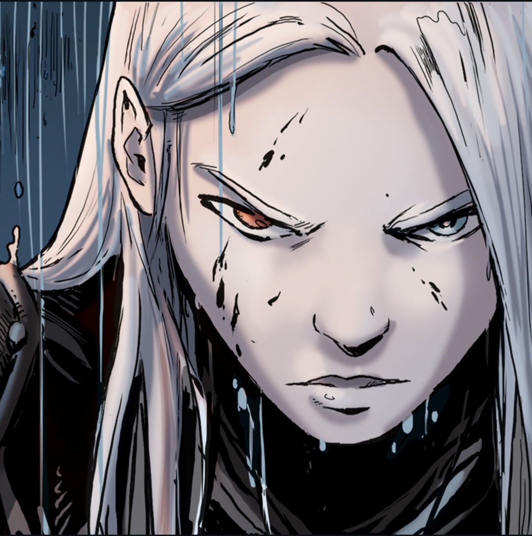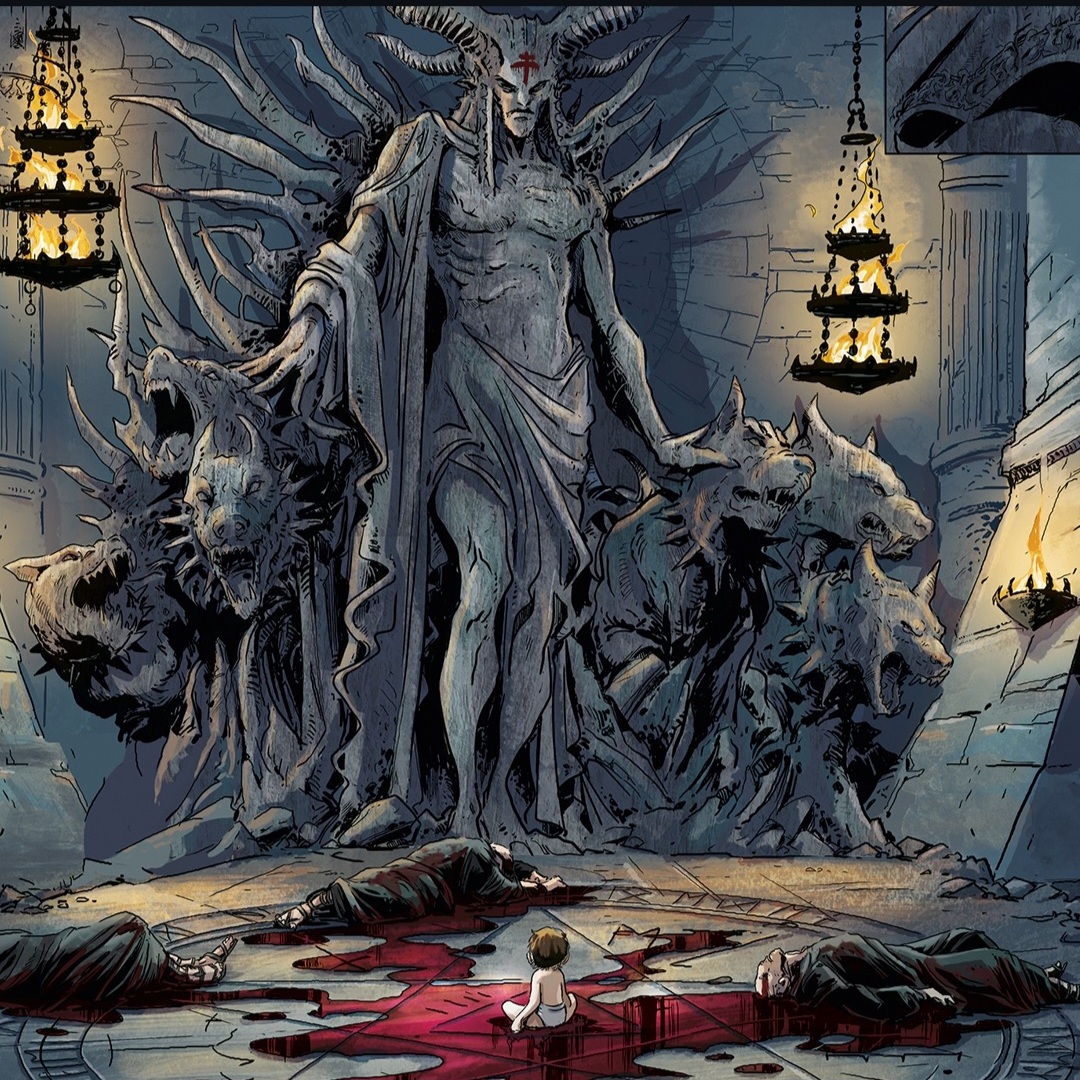 Sous le Panthéon, une immense statue en pierre, dont la tête est ornée de cornes, semble regarder le massacre. À la lueur des flammes qui éclaire la pièce, on distingue des hommes, dont certains masqués, baignent dans une mare d’un liquide écarlate. Et au milieu, assise et hurlant pour appeler sa mère : une enfant. Quelques gardes arrivent, et, à la vue de l’enfant, restent figés. Sa peau pâle fait ressortir ses yeux étranges, de deux couleurs différentes. Un des premiers stigmates des Aëldr’aar, ces créatures de l’ombre, qui sentent la mort.