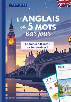 L’anglais en 5 mots par jour et L’espagnol en 5 mots par jour sont deux livres d’apprentissages efficaces, des éditions Larousse. Deux ouvrages complets et motivants, pour enrichir son vocabulaire, dans une routine agréable et progressive, selon les capacités et envies de chacun.