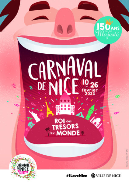 En 2023, Notre majesté le Roi du Carnaval fêtera ses 150 ans ! Dans le sillage de cette date anniversaire, c’est plus d’un siècle de création, d’inventivité et d’impertinence que s’apprête à célébrer la Ville de Nice du 10 au 26 Février 2023. Un instant de fête intense incarné par le large sourire du Roi Carnaval, témoignage de la » mascarade » joyeuse et populaire dont profite chaque année le public, toujours très nombreux. Après le « roi des animaux », le thème de cette nouvelle édition sera « le roi des trésors du monde ».