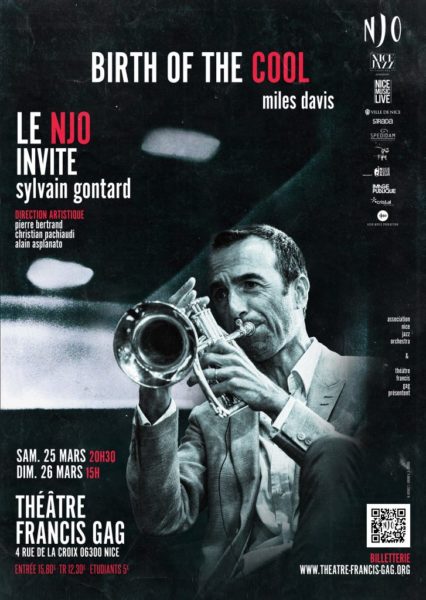 Samedi 25 à 20h30 et dimanche 26 mars à 15h, le NJO revisite Birth of the Cool de Miles Davis en compagnie de Sylvain Gontard au théâtre Francis Gag (4, rue de la Croix, dans le Vieux Nice) : 04 92 00 78 50