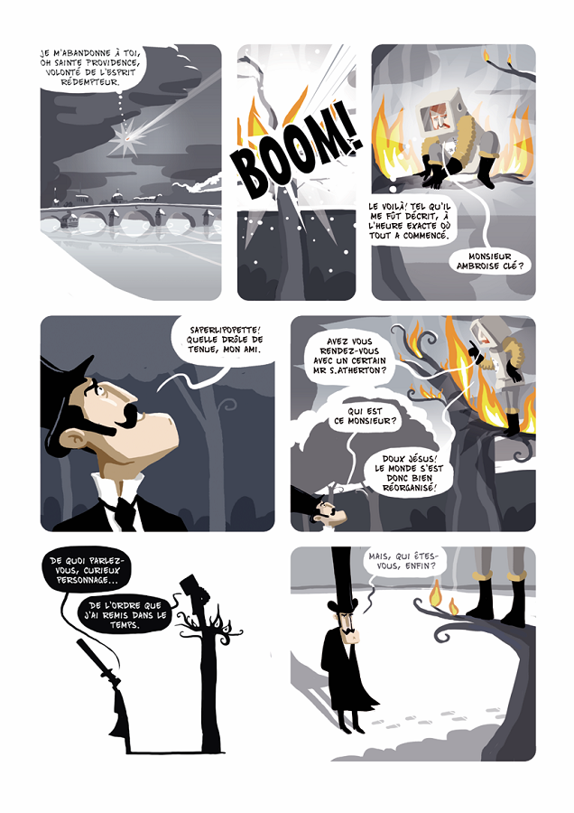 On retrouve le commissaire Ambroise Clé, à l’aube du 1er janvier 1901, à Paris, errant sur les bords de Seine, un astre semble passé dans le ciel, et atterri tout proche, un homme, habillé avec un scaphandrier, des flammes autour de lui, perché sur une branche, s’adresse au commissaire, lui demandant de lui venir en aide car c’est un homme sans passé, « un paradoxe incarné ». Ambroise amène cet homme afin d’avoir des explications, auprès de ses amis, l’inspecteur Darcheville et le professeur Jonathan Sweitzer, qui n’est autre que l’aïeul de l’homme au scaphandrier, Adelme Sweitzer, voyageur dans le temps. Adelme est intervenu sur le temps pour désarmer William Moon, le père du tueur au compas, mais à son retour quelqu’un avait pris sa place, il n’existait plus !