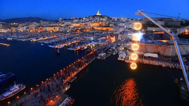 Quelle soirée agréable et qu’il était plaisant de déambuler tout autour du vieux port illuminé par six milles pots et porté par une ambiance musicale en accord avec la soirée. La promenade d’un peu plus de 3 km passait dans un tunnel de feu de 300 m de long, permettait de traverser le vieux port. Tout le long, il était possible de s’émerveiller de compositions enflammées : un lustre composé de 5 boules de 4 mètres de diamètres pour une hauteur de 35 mètres entre le fort Saint jean et le fort Saint Nicolas, des lianes de feu, des fleurs géantes…