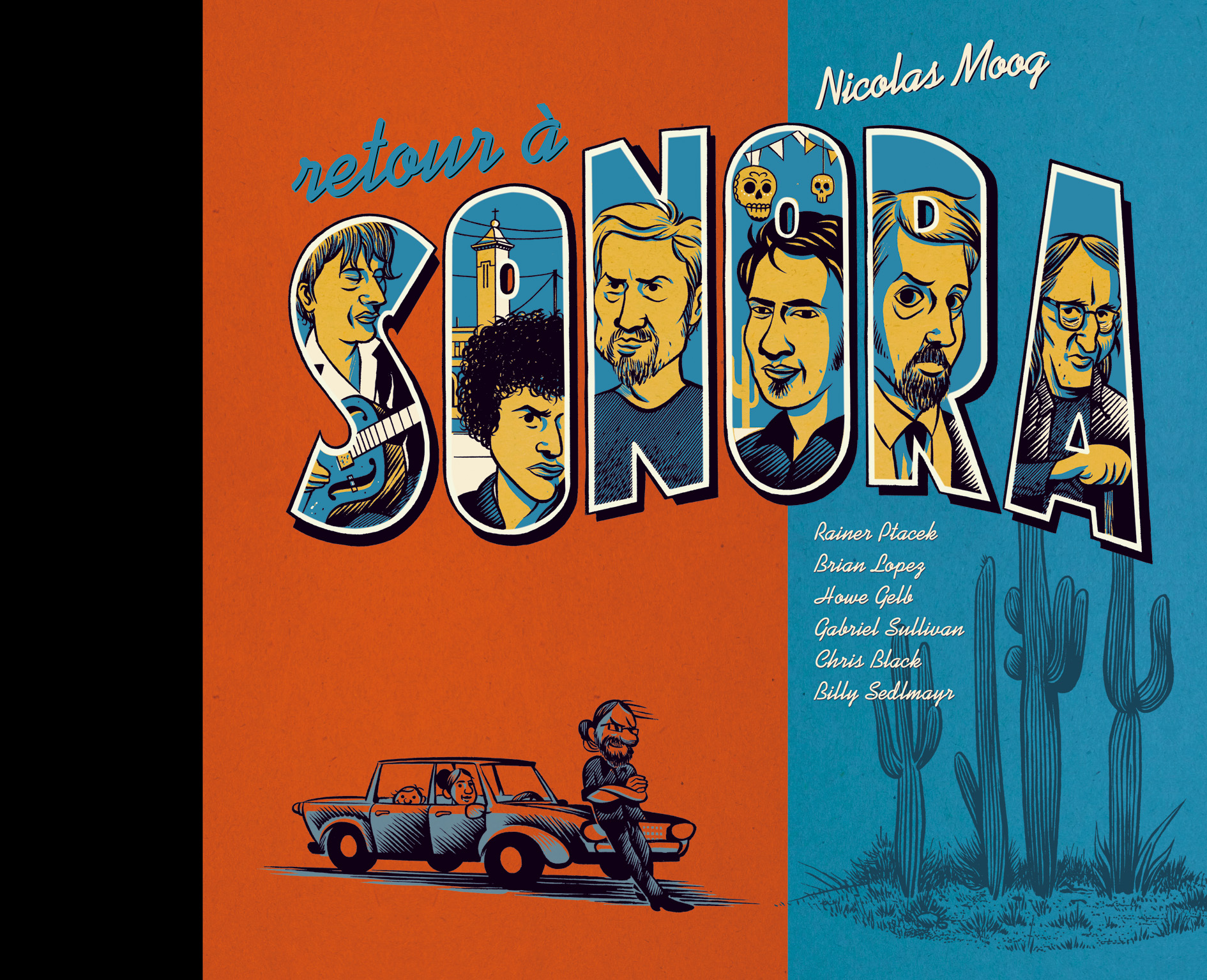 Le dessinateur originaire de Metz Nicolas Moog a pour particularité de faire partie de ce club pas du tout fermé des auteurs de BD qui sont aussi musiciens puisqu’il joue du banjo et de la guitare au sein du groupe country Thee Verduns. D’où sans doute cette volonté d’aller aux origines de cette musique et donc, comme il le dit très clairement, de confronter la réalité à cette image mythique de l’Amérique qui a hanté son imaginaire à travers la musique ou encore la littérature. Cette démarche, quelque part entre le carnet de voyage et le travail journalistique avait déjà abouti sur un livre, MY AMERICAN DIARY publié en 2009, pour lequel Nicolas Moog partait à la rencontre de musiciens issus de la scène musicale d’Austin au Texas. RETOUR A SONORA peut être vu comme la suite ou le complément de ce précédent opus, Moog se déplaçant cette fois-ci à Tucson dans l’Arizona à une centaine de kilomètres de la frontière Mexicaine.