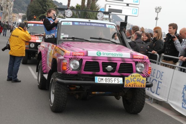 Dominique SERRA (organisatrice de l’évènement) a donné le départ ce 21 Mars sur la promenade des Anglais avec Mr Christian Estrosi. La ville de Paris ne souhaitant pas être partenaire c’est la ville de Nice qui a été retenue pour le lancement de cette 25eme édition du Rallye Aïcha des Gazelles. Cette course d’orientation 100% féminine n’est pas une course de vitesse mais une compétition à travers le Maroc. Durant 15 jours et 6 épreuves sans moyens de communications et ni GPS, ces femmes doivent se diriger à la boussole et au compas à partir d’une carte. Le but étant de relier les balises en faisant le moins de Kilomètres.