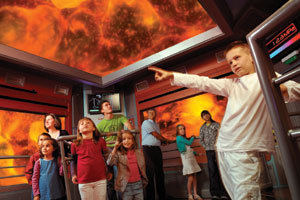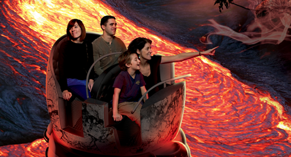 A l’intérieur d’une navette d’exploration dynamique, vous voyagerez dans les entrailles d’un volcan avec des effets de chaleur pour encore plus de réalisme !